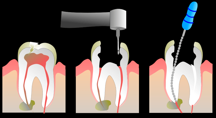 Pulpectomías: Endodoncia completa en dientes temporales muy dañados, que consiste en limpiar y desinfectar todo el conducto radicular, luego rellenarlo con material reabsorvible hasta la caída natural del diente.